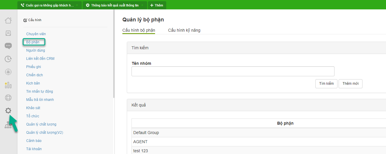 Bộ phận trên CareSoft là đối tượng gom nhóm các chuyên viên về 1 nhóm. Tương đương mô hình 1 phòng ban trong mỗi doanh nghiệp. Có trưởng nhóm (Supper)  và các chuyên viên (Agent)&#x20;